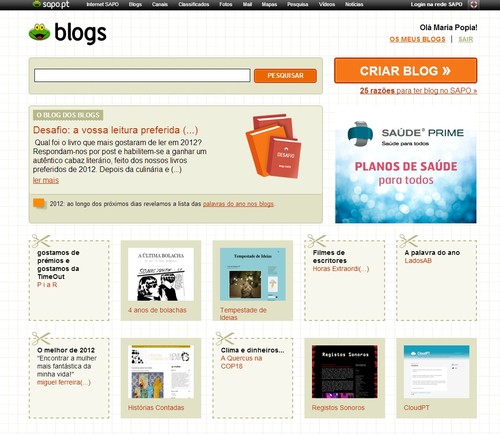 Distraída como sou nem me tinha dado conta disto...então não é que estes simpáticos e incansáveis senhores do Blogs do Sapo destacaram este meu humilde bloguito?