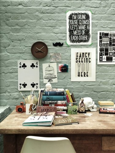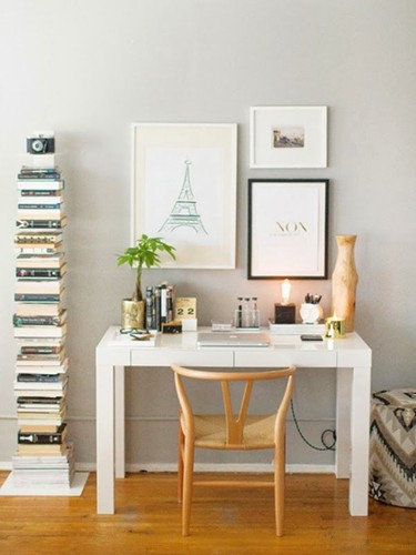 A minha secretária, e a zona que a rodeia, estão a precisar urgentemente de um update. Andei a vaguear pelo pinterest (esse antro de coisas giras e inspiradoras) e encontrei algumas sugestões engraçadas. Um pormenor aqui e outro ali e já estou com algumas ideias na cabeça, a principal delas é pendurar quadros com fartura e manter a coisa simples mas agradável à vista e confortável.